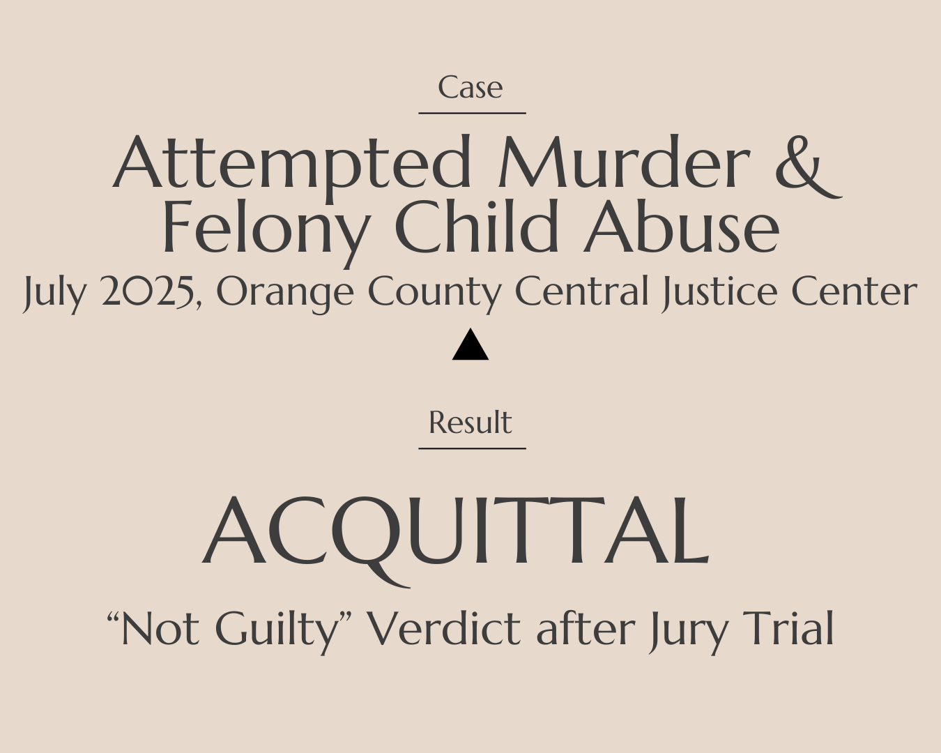 Four-week trial. Client facing potential life sentence. Client acquitted of attempted murder, all lesser included offenses, and felony child abuse.