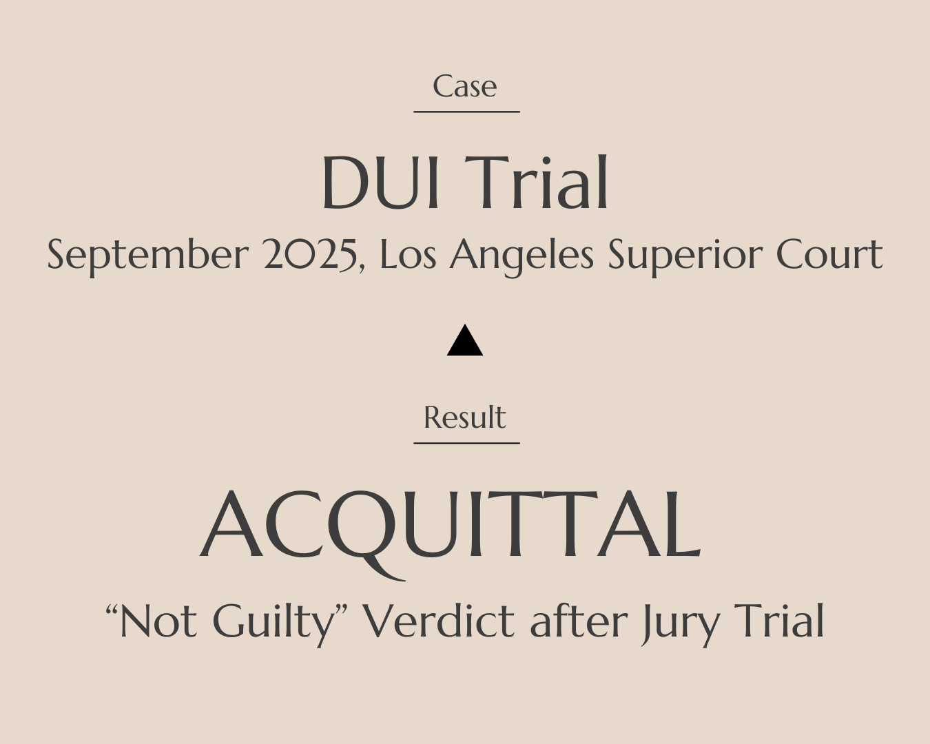 Jury trial on DUI charge stemming from vehicle collision. After a brief deliberation, the jury returned a not guilty verdict.